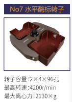No7 | 水平酶標轉子 | 2X4X96孔 | 4200r/min | 2130xg |